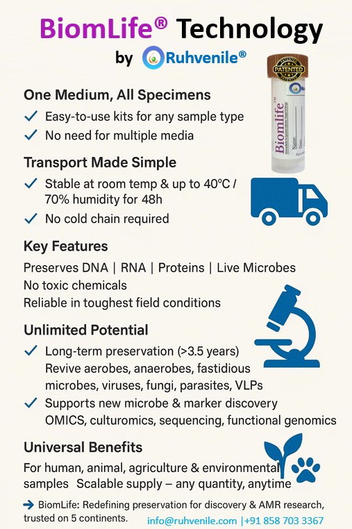 The Future of Sample Integrity: Next-Generation Sample Transport & Preservation Solutions Learn More Our DEEP-TECH products: Innovating Beyond Life SciencesBiomLife® | truGnom® | UroStabl™ | Cokisol® Our Innovative Patented Solutions, Trusted Worldwide BiomLife® truGnom® UroStabl™